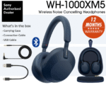 The Sony WH-1000XM5 are premium wireless over-ear headphones designed for immersive listening. Featuring advanced noise canceling, high-resolution audio support, and a sleek midnight blue finish, they deliver exceptional sound quality with deep bass and crystal-clear vocals. Ideal for smartphones, tablets, and laptops, these headphones combine portability, comfort, and cutting-edge audio performance for everyday use.