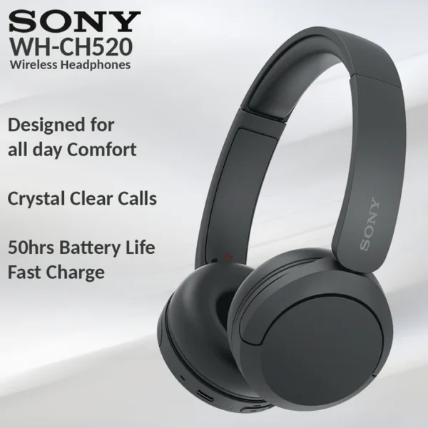 Enjoy wireless freedom and clear sound with Sony WH-CH520 — comfort and convenience in black.