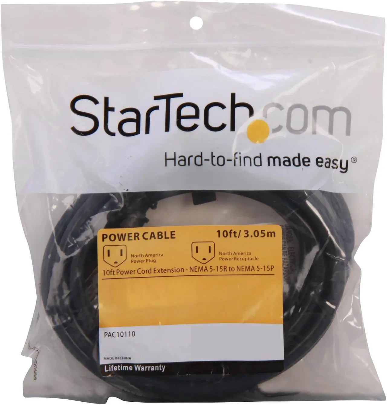 StarTech PAC10110 β 10 ft Power Cord Extender Cable, NEMA 5-15R to NEMA 5-15P, Black
