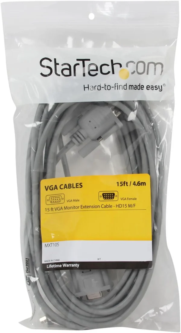 The StarTech MXT105 VGA extension cable provides a dependable way to extend the reach of your VGA monitor connection. Featuring HDDB15 male-to-female connectors, this cable is ideal for connecting monitors, projectors, and legacy display devices requiring VGA compatibility.