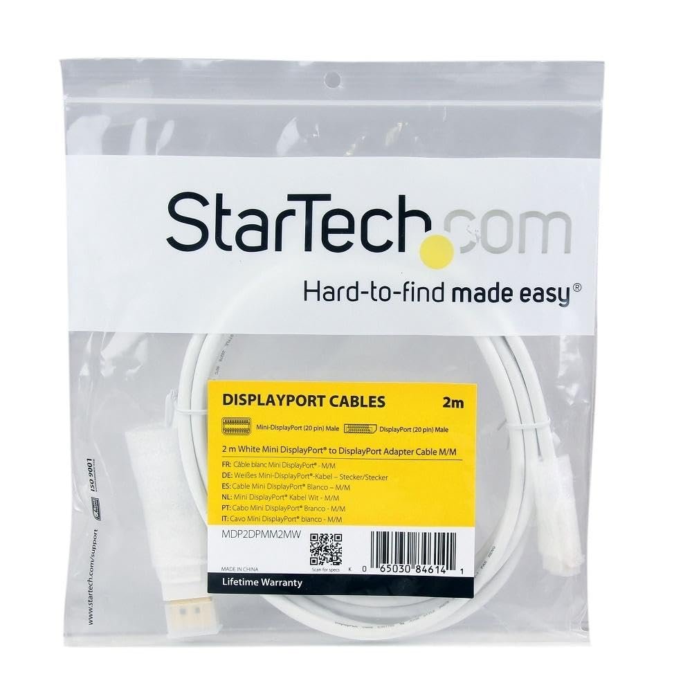 StarTech MDP2DPMM2MW Mini DisplayPort to DisplayPort Cable β 2 Meter (6 ft) β White β M/M β 4K UHD β MDP 1.2