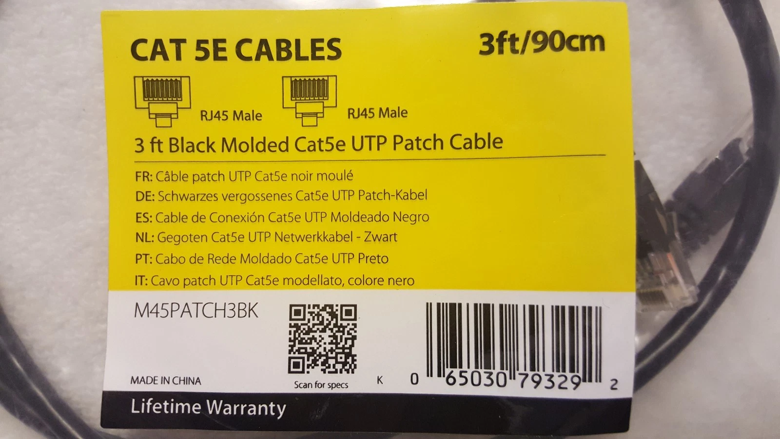 Compact 3-foot Cat5 patch cable designed for secure Ethernet and PoE connections in tight setups