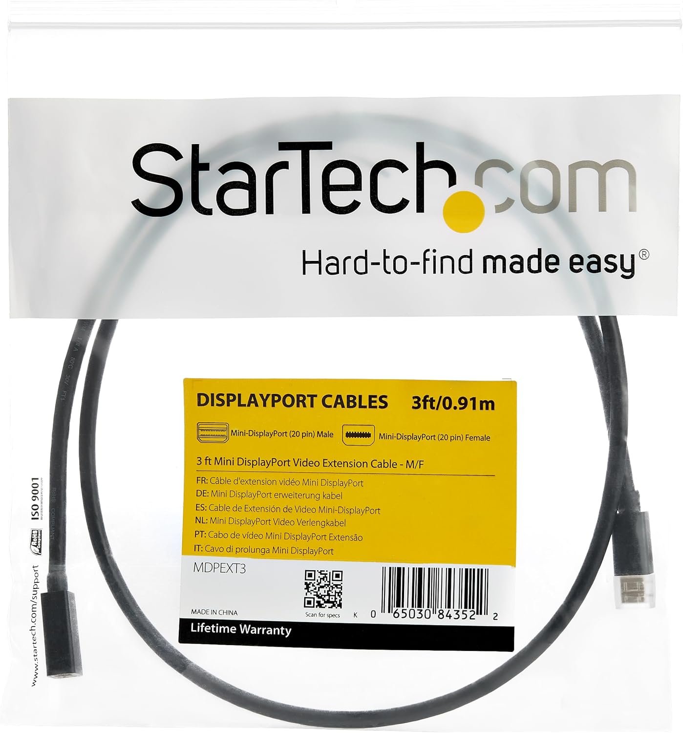StarTech MDPEXT3 3 ft Mini DisplayPort 1.2 Video Extension Cable β Male to Female, Black