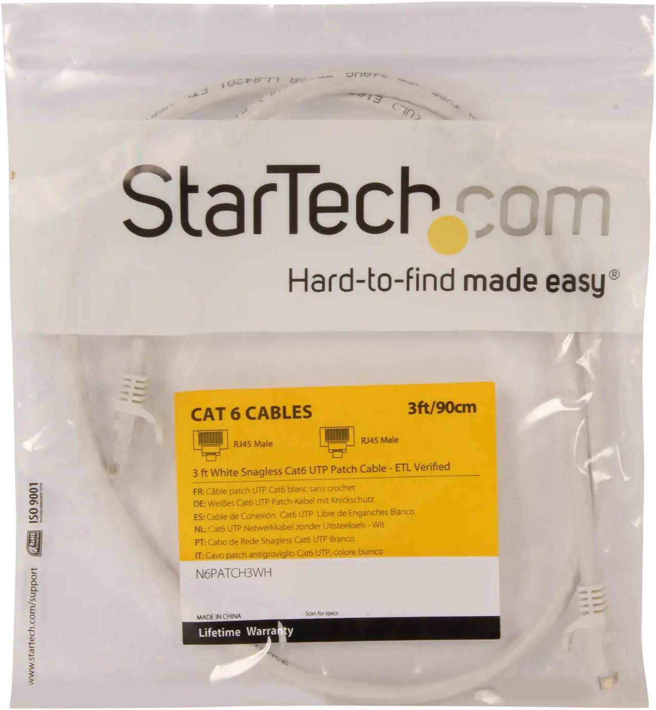 Simplify your short-distance connections with StarTech’s durable 3 ft white Cat6 patch cable today.