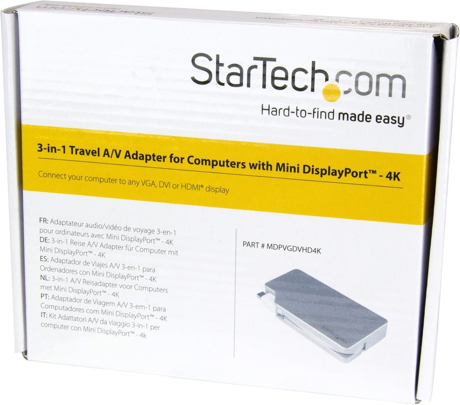 StarTech MDPVGDVHD4K 3-in-1 Mini DisplayPort to HDMI / DVI / VGA Adapter β 4K UHD, Aluminum Travel Design
