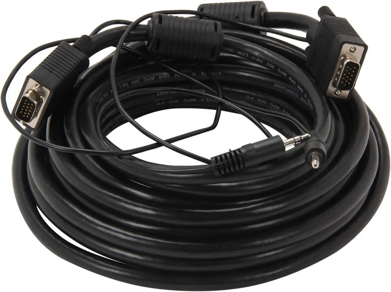 35-foot VGA monitor cable with HD15 male-to-male connectors, coaxial shielding, and durable black jacket for dependable high-resolution display connections