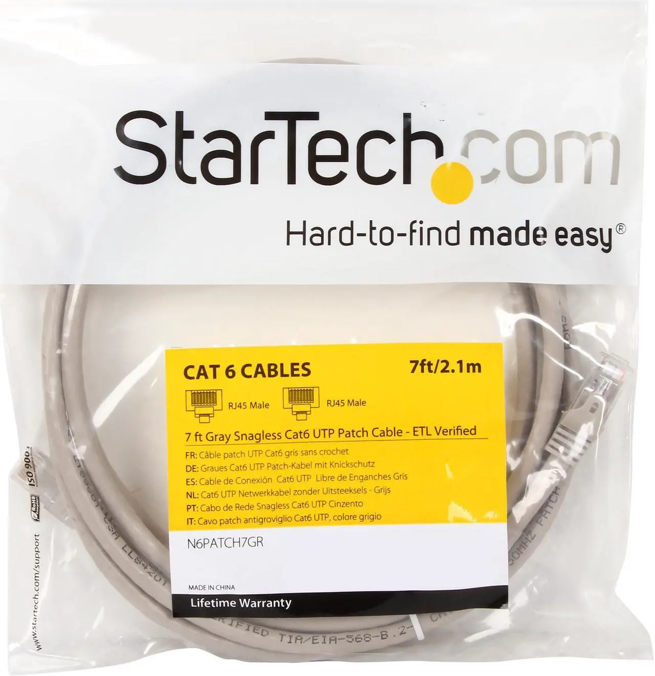 Upgrade your medium-length connections with StarTech’s durable 7 ft gray Cat6 patch cable today.