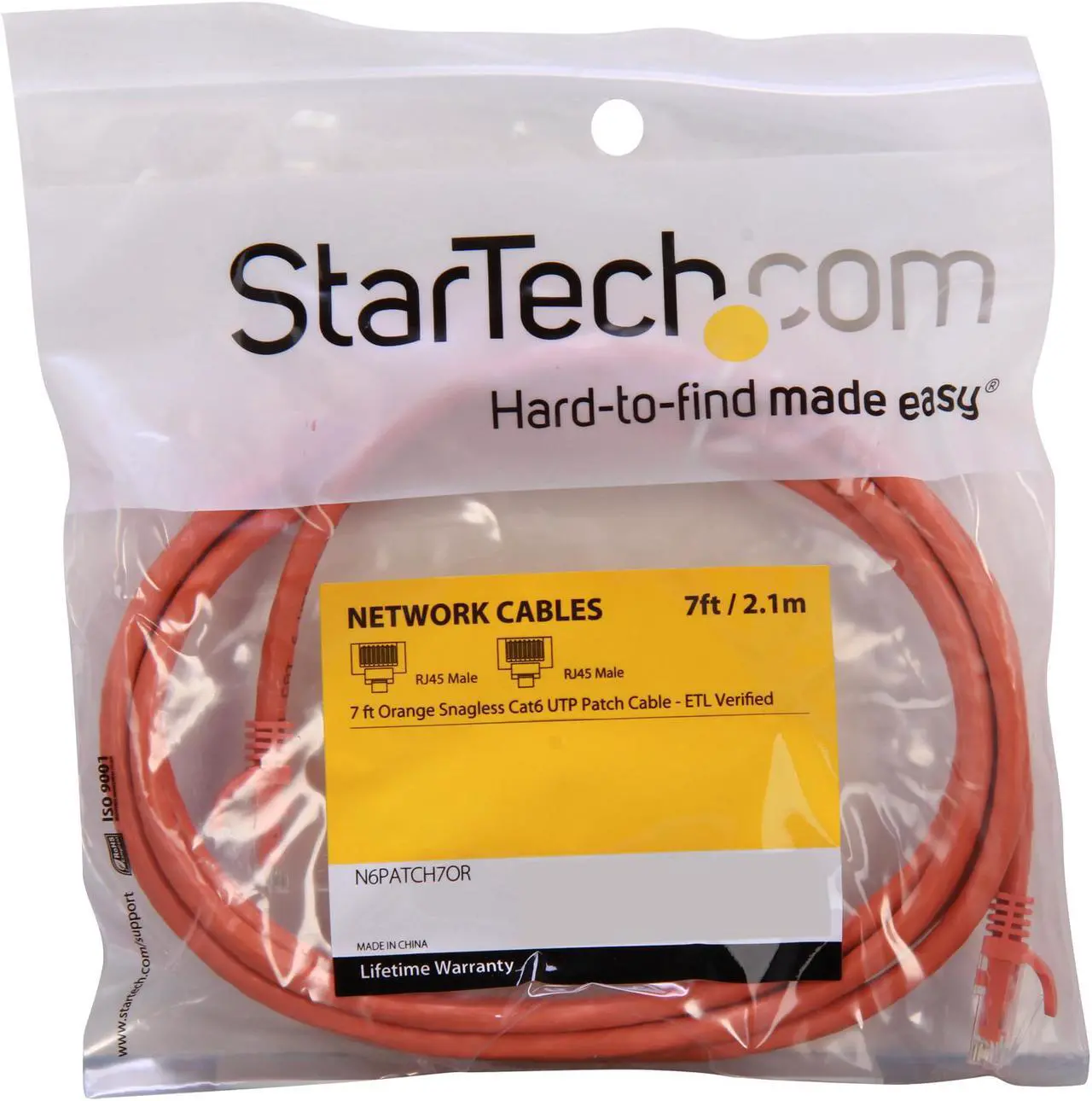 StarTech N6PATCH7OR β 7 ft Orange Snagless UTP Cat6 Patch Cable