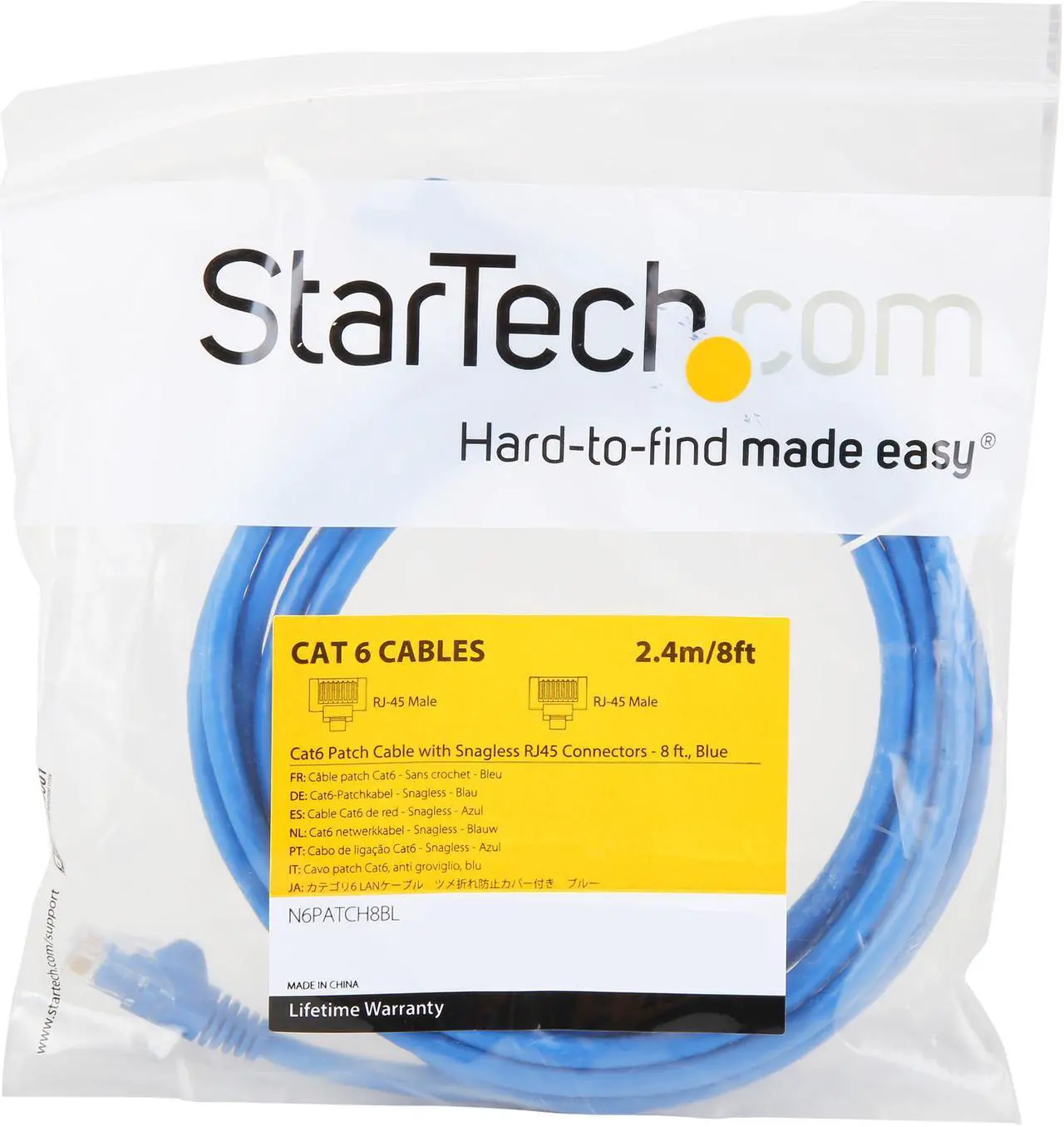 StarTech N6PATCH8BL – 8 ft Blue Cat6 UTP Snagless Ethernet Patch Cable