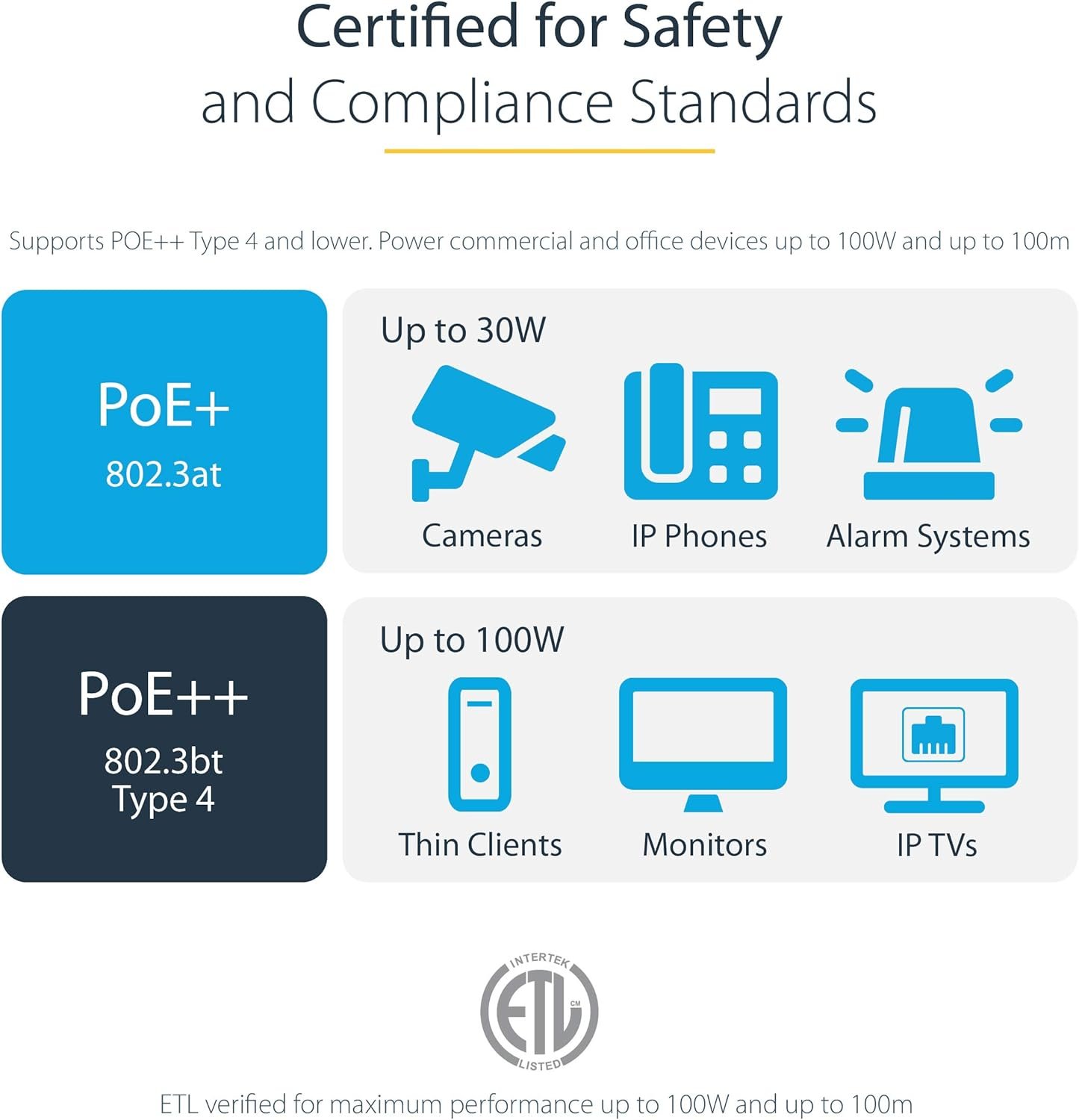 🔌 PoE Compatible – Supports powering devices up to 100W
