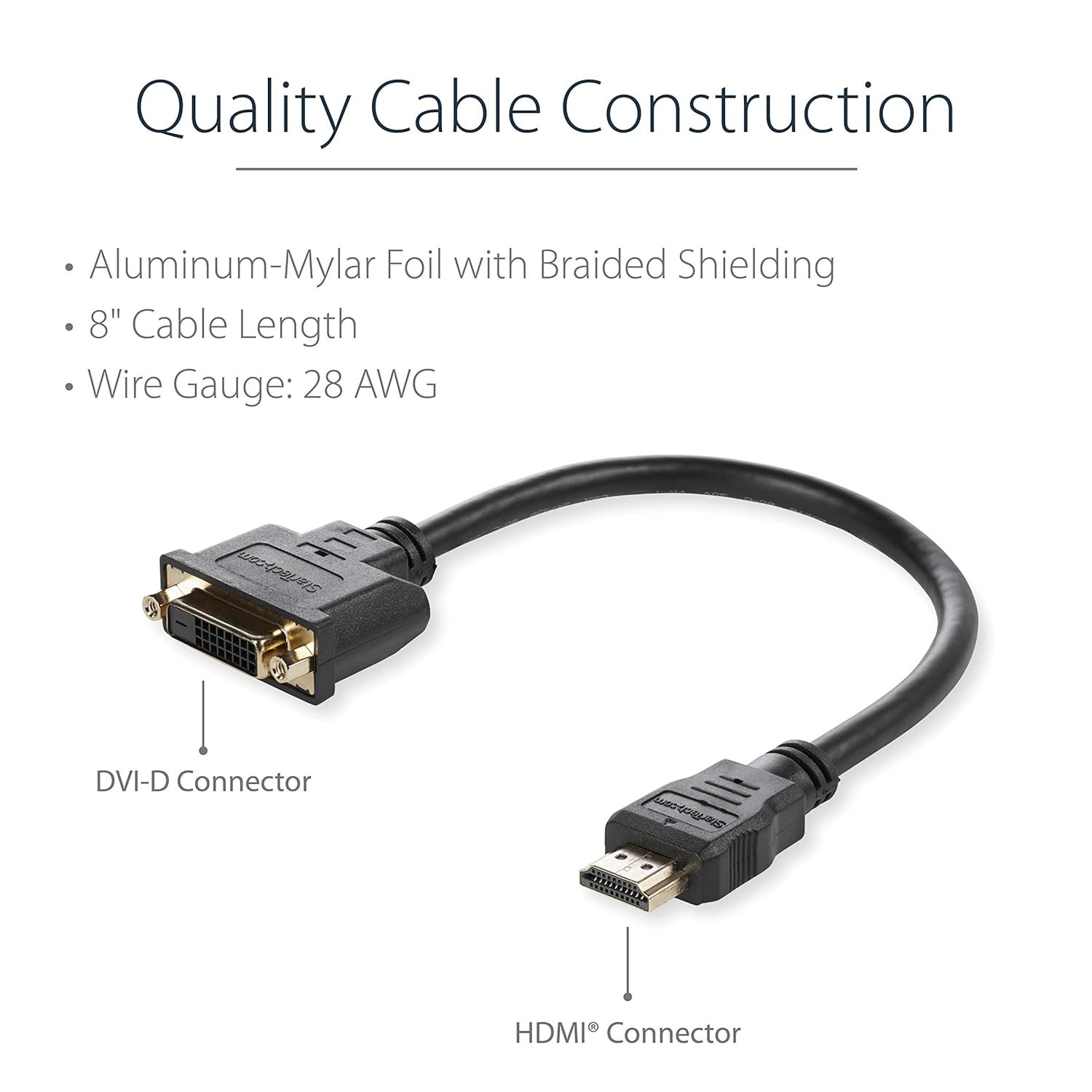 StarTech HDDVIMF8IN 8in HDMI to DVI-D Video Cable Adapter – HDMI Male to DVI-D Female, Bi-Directional