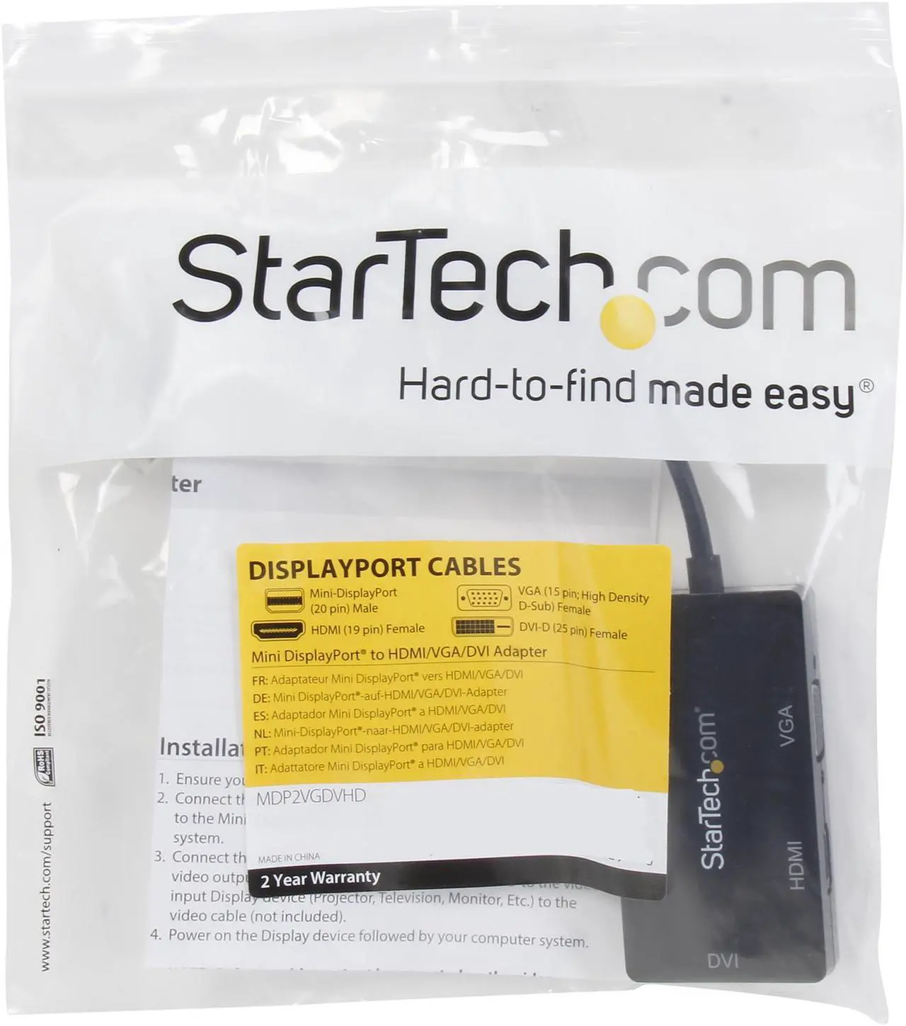 StarTech Mini DisplayPort to VGA/DVI/HDMI adapter β€” 3-in-1 travel-ready display solution with 4K HDMI support