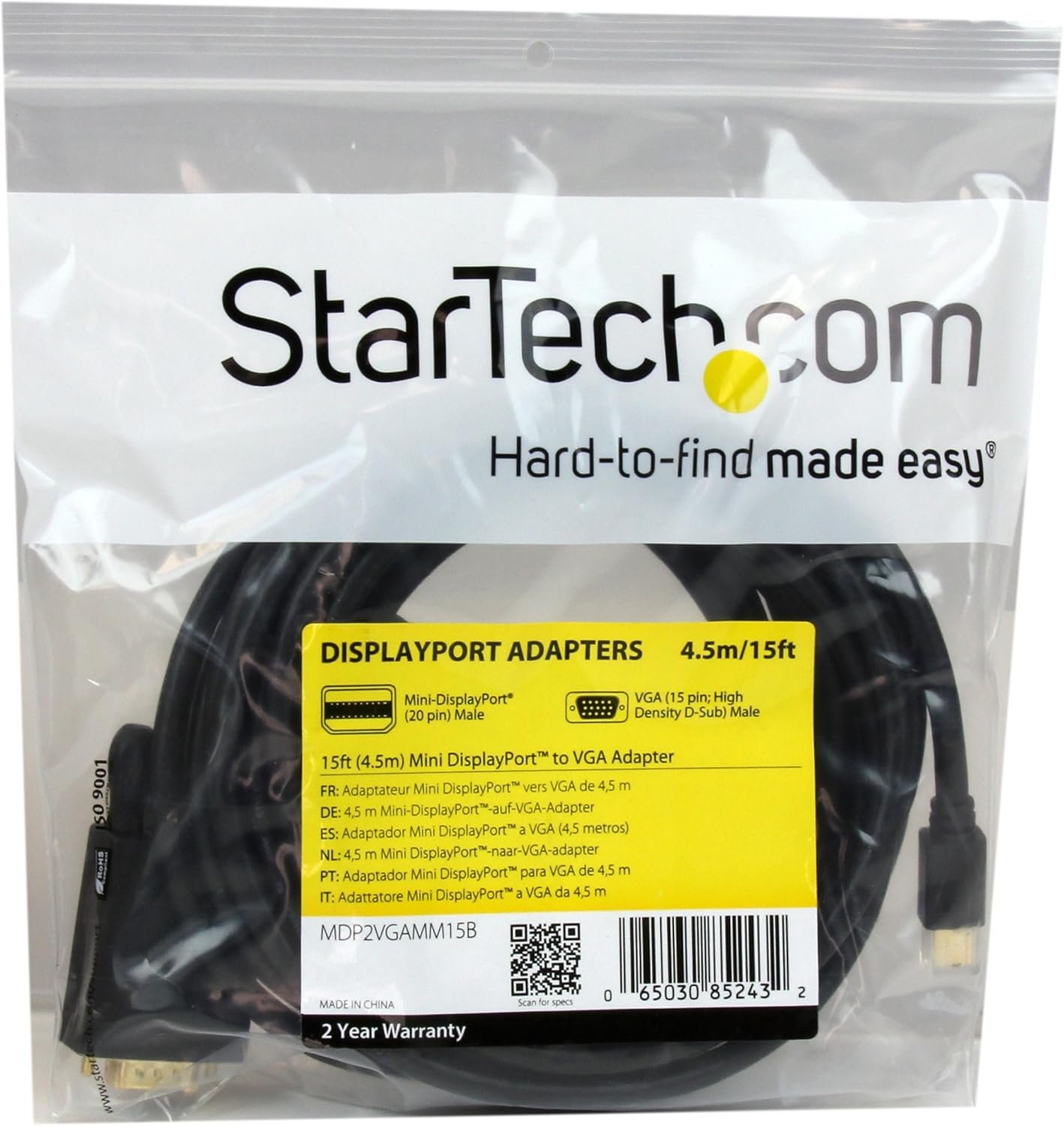 Go the distance with legacy VGA — StarTech’s 15ft active Mini DP cable delivers clarity and reach.