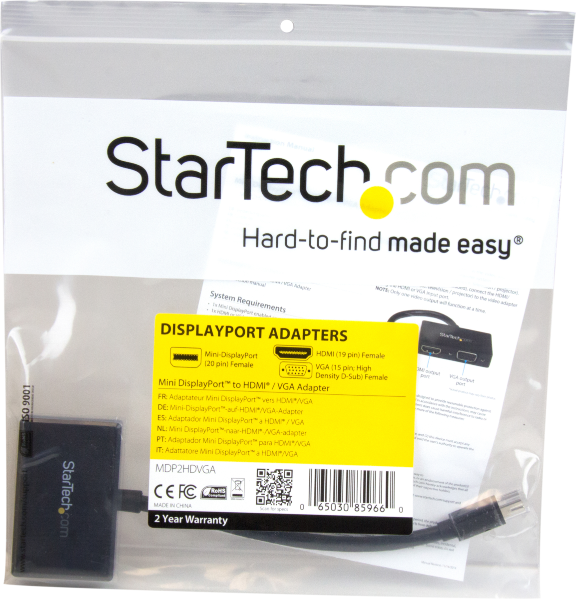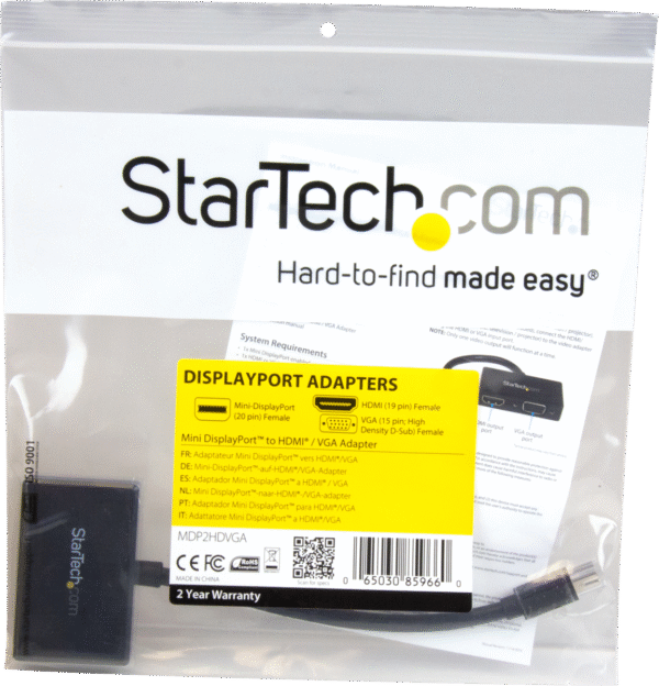 The StarTech MDP2HDVGA is a versatile Mini DisplayPort adapter that lets you connect your laptop or Ultrabook to either an HDMI or VGA display using a single compact device. Designed for travel and portability, it supports resolutions up to 1920Γ—1200 or 1080p and is compatible with Thunderbolt 1/2 systems. Ideal for business presentations, classroom setups, and mobile professionals who need flexible display options on the go.