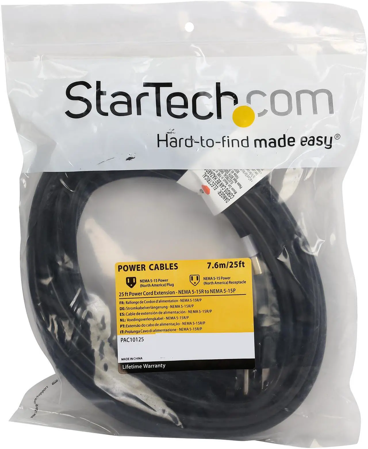 StarTech PAC10125 β 25 ft Power Cord Extension Cable, NEMA 5-15P to NEMA 5-15R, Black