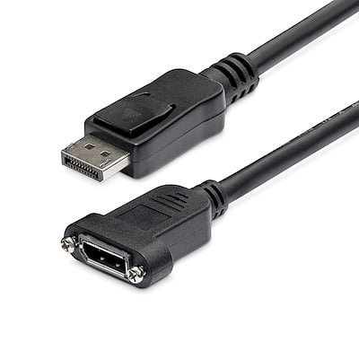 StarTech.com 3ft (1m) Panel Mount DisplayPort Cable, 4K x 2K Video, DisplayPort 1.2 Extension Cable Male to Female, DP Extender Cord – Cable for Audio/Video Device – First End: 1 x 20-pin DisplayPort Digital Audio/Video – Male – Second End: 1 x 20-pin DisplayPort Digital Audio/Video – Female – Gold Plated Connector – Black