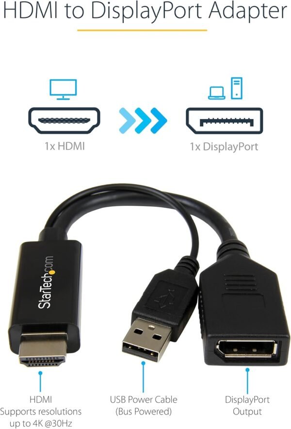 StarTech HD2DP HDMI to DisplayPort Adapter β USB-Powered, 255mm Cable, 3840Γ2160 @30Hz Max Resolution