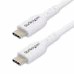 StarTech.com 3 m USB-C Data Transfer Cable – 1 – Cable for Notebook, Computer, Wall Charger, Power Bank, Workstation, Mobile Device – First End: 1 x USB 2.0 Type C – Male – Second End: 1 x USB 2.0 Type C – Male – 480 Mbit/s – Shielding – Nickel Plated Connector – 24/30 AWG – White
