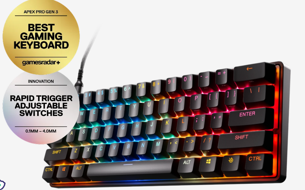 SteelSeries 64913 Apex Pro Mini Gaming Keyboard – OmniPoint Adjustable Switches – US + Magnetic Wrist Rest (Gen 3)