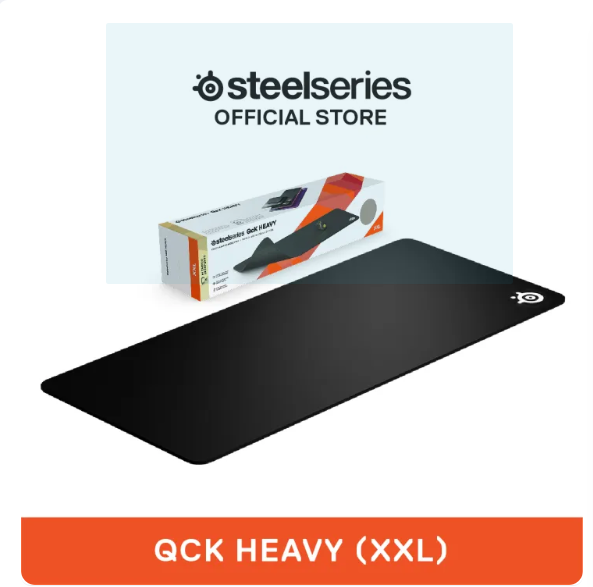 The SteelSeries QcK Heavy XXL is a premium cloth gaming mousepad designed for players who demand maximum surface area and consistent precision. Featuring a thick, non‑slip rubber base and a micro‑woven cloth surface, it provides stability and smooth tracking for both optical and laser sensors. Its oversized dimensions cover the entire desk, making it ideal for gamers who prefer low‑DPI settings and wide mouse movements.