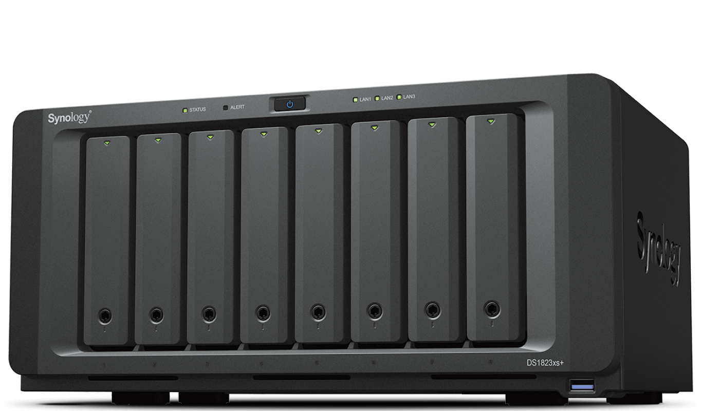 Synology DiskStation DS1823xs+ – 8-Bay NAS, AMD Ryzen V1780B Quad-Core 3.35GHz (Turbo 3.6GHz), 8GB DDR4 ECC RAM (Expandable to 32GB), Built-in 10GbE, Dual M.2 NVMe SSD Slots, 3Γ— USB 3.2 Gen 1