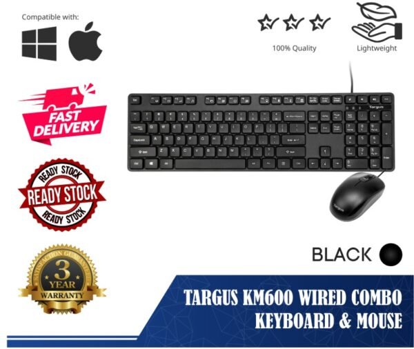 Targus KM600 Corporate USB Wired Keyboard & Mouse Bundle – Model AKM600AP, 108-Key Full-Size Keyboard, Ambidextrous Mouse, Plug-and-Play