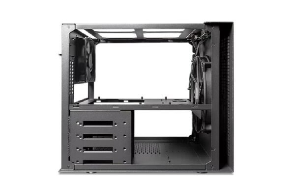 • Featuring a unique perforated square design and front 200mm fan in a compact cube structure