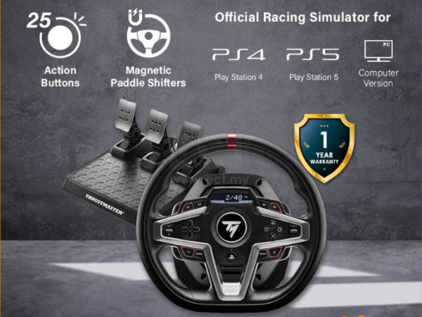 The Thrustmaster T248 PS Version is a hybrid drive racing wheel and pedal set designed for immersive sim racing. Officially licensed for PlayStation 5 and PlayStation 4, and compatible with PC, it features dynamic force feedback, a built‑in interactive dashboard display, and a premium pedal set. Perfect for enthusiasts and competitive racers, it delivers precision, realism, and versatility across racing titles.