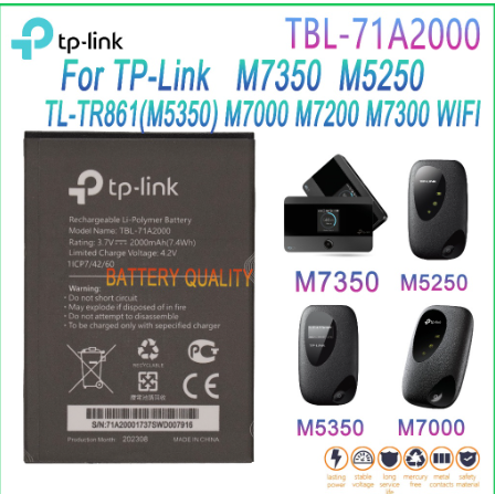 The TP-Link TBL-71A2000 battery is a genuine replacement designed for TP-Link mobile hotspot routers including M7000, M7200, and M7350. With a 2000mAh Li-ion capacity, it ensures reliable backup power, extended usage, and consistent performance for your portable WiFi device. Perfect for users who need dependable connectivity on the go.