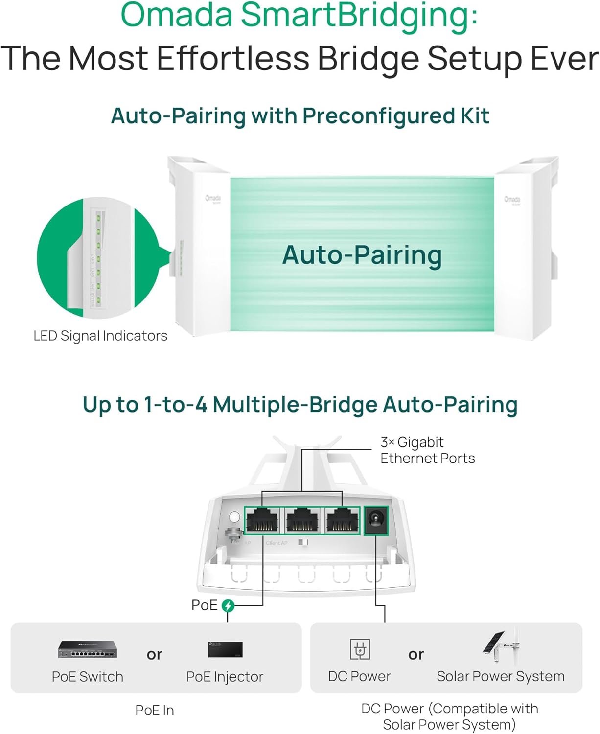 Expand your network with secure indoor/outdoor bridging — choose the Omada EAP100-Bridge Kit today.