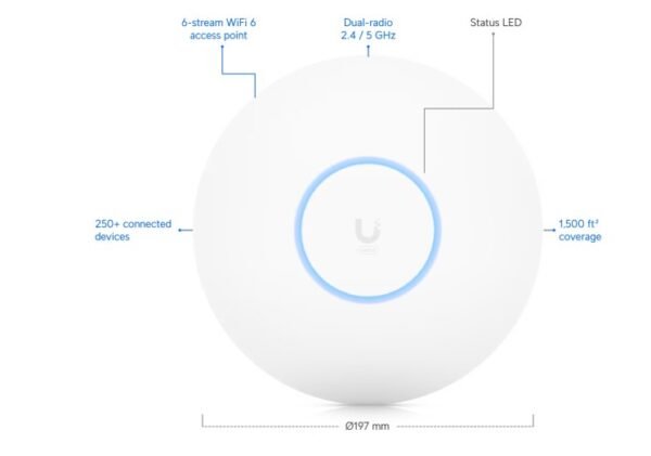 The UniFi U6 Pro is a high-performance WiFi 6 access point designed for enterprise and high-density environments. It delivers dual-band 4×4 MU-MIMO connectivity, supports over 300 clients, and integrates seamlessly with the UniFi Network application for centralized management. With a 2.5GbE uplink and advanced OFDMA technology, it ensures fast, reliable wireless coverage for modern networks.