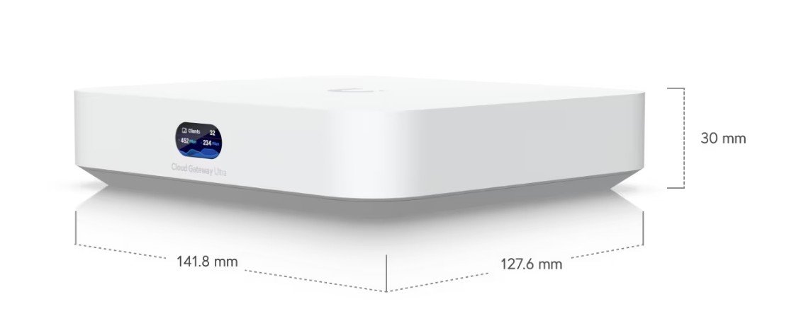 The UniFi Cloud Gateway Ultra is a compact, high-performance gateway appliance designed for small offices, retail, and advanced home networks. It delivers enterprise-grade security, VPN, and SD-WAN features in a space-saving form factor, while seamlessly running UniFi applications for centralized management of your network and connected devices.