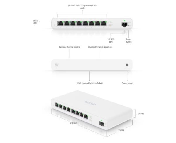 Build dependable UISP edge networks with an eight‑port, fanless PoE switch and dedicated SFP uplink.