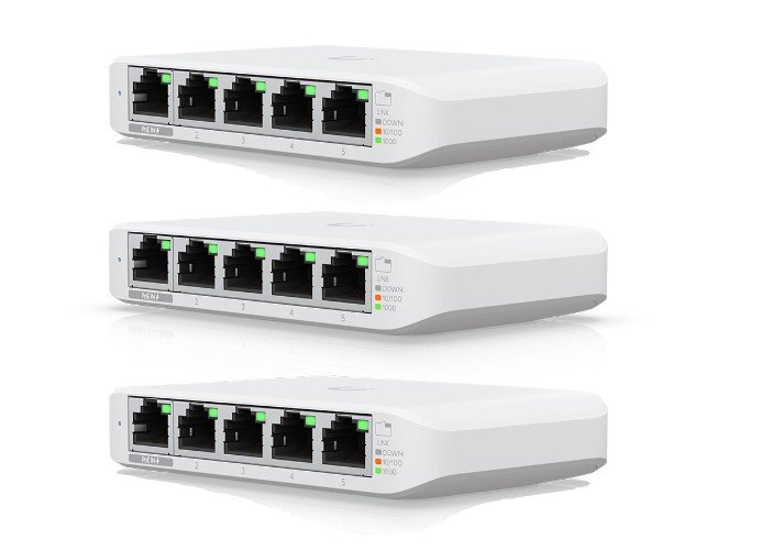 Expand your UniFi network with the compact USW‑Flex‑Mini, available in a 3‑pack