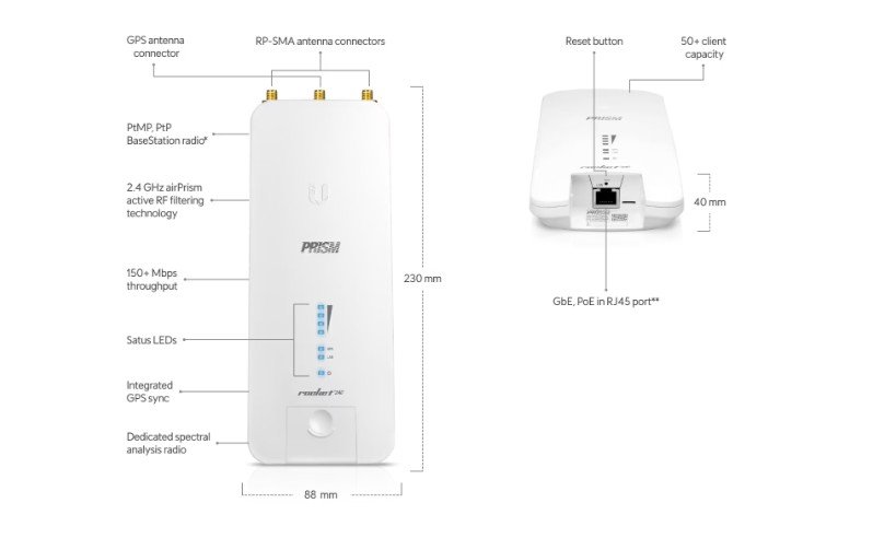 The Ubiquiti Rocket Prism 2AC (R2AC‑PRISM) is a full‑band 2.4 GHz airMAX ac radio engineered for high‑density environments. Featuring airPrism filtering technology, Gigabit Ethernet, and a dedicated management Wi‑Fi radio, it delivers superior performance, reduced interference, and simplified configuration for professional wireless deployments.