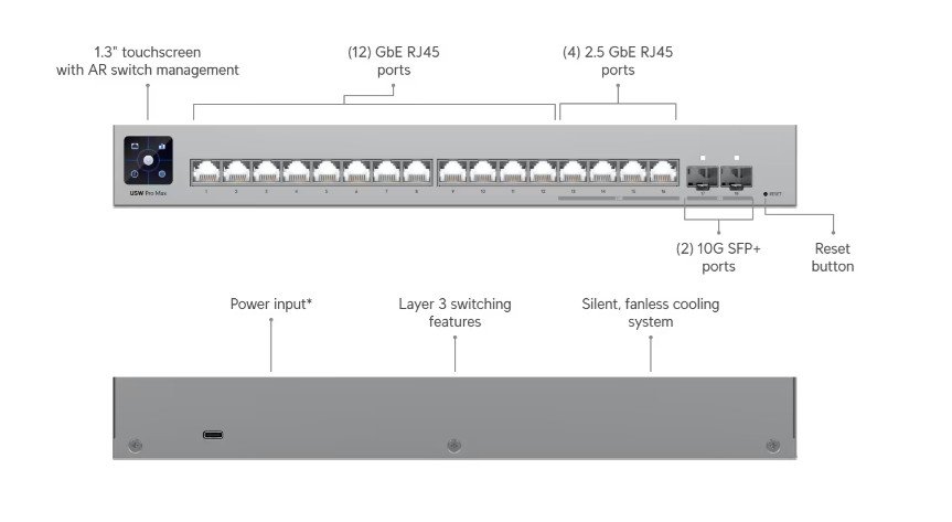 Ubiquiti USW-Pro-Max-16 UniFi Switch Pro Max – 16-Port Non-PoE Layer 3 Enterprise Switch with advanced management