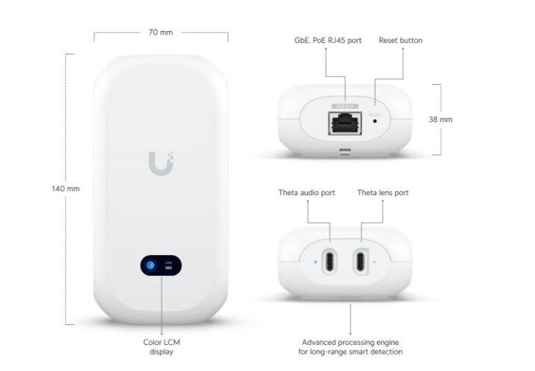 The UniFi Protect AI Theta is a modular AI-powered camera system designed for flexible, discreet surveillance. Featuring a compact main unit and remote lens modules, it delivers 360Β° coverage with advanced AI detection. Ideal for professional environments, the AI Theta integrates seamlessly with UniFi Protect, offering versatile installation options and intelligent monitoring in a minimal form factor.