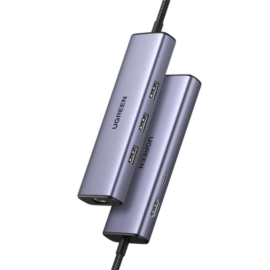 UGREEN CM512 6-in-1 USB-C Adapter with HDMI 4K@30Hz, 100W PD pass-through, RJ45 Gigabit Ethernet, and USB 3.0 ports for versatile connectivity