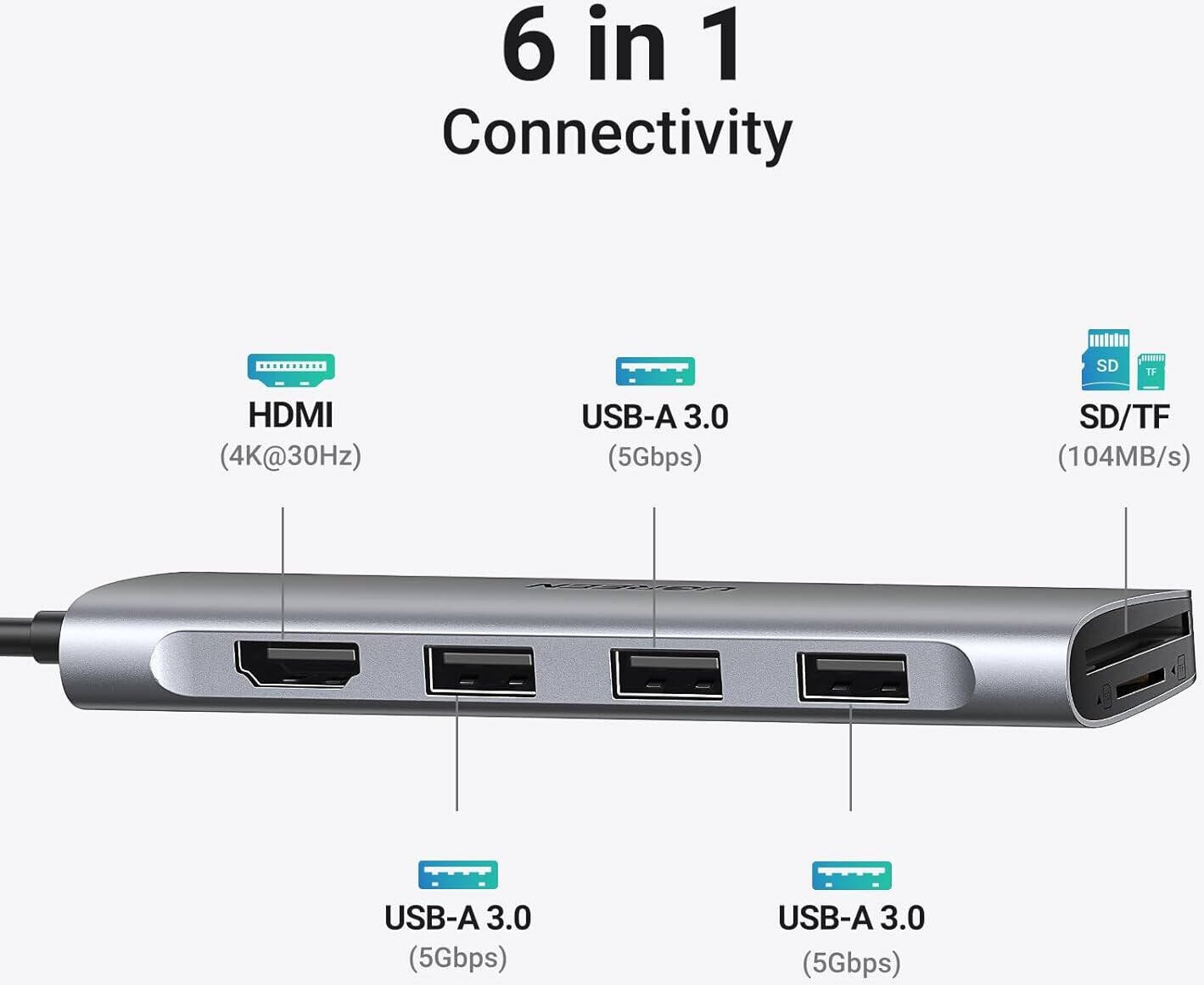 | Ports | 6โinโ1 (HDMI, USB 3.0 ร2, SD, TF, USBโC input) |