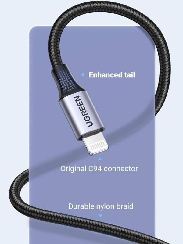 Charge and sync with confidence using UGREEN LP200-30589 โ rugged, MFi-certified Lightning cable for everyday use