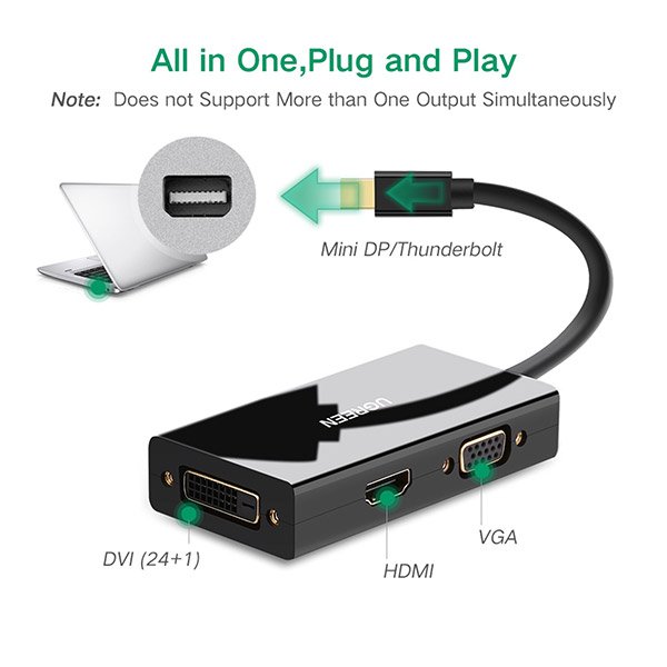 UGREEN MD114-20418 3-in-1 Mini DisplayPort Male to HDMI / VGA / DVI Female Adapter β Black, 1080p Full HD Support