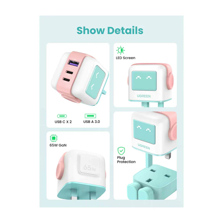Charge smarter and faster with UGREEN’s 65W GaN triple-port solution today.