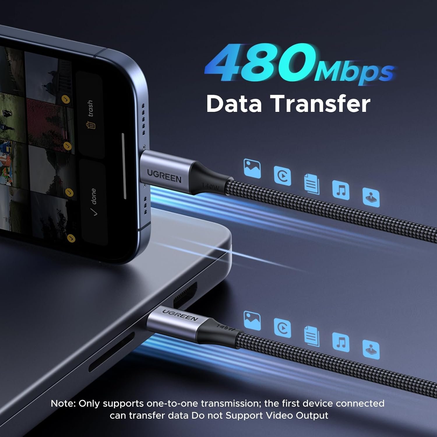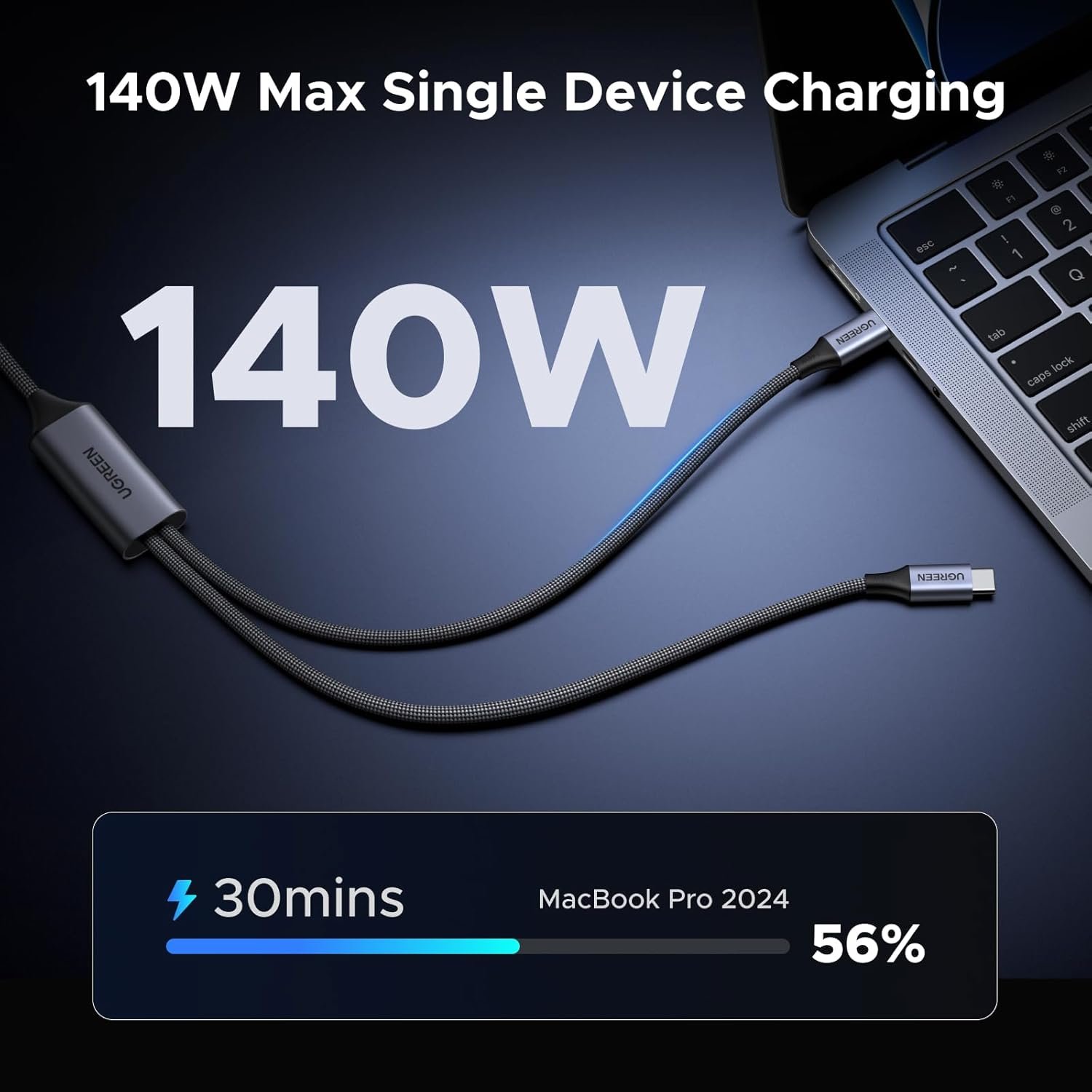 Simplify your charging setup with UGREENβs 140W 1-to-2 USB-C Cable.