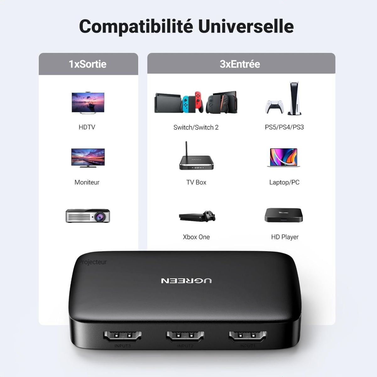 🖥️ Seamless device management – easily switch between 3 HDMI sources