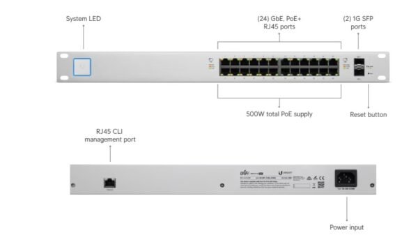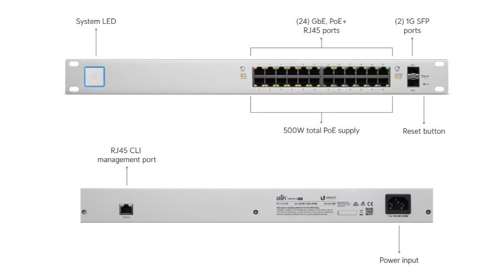 ⚡ 500W PoE Budget – Powers UniFi APs, cameras, and VoIP phones