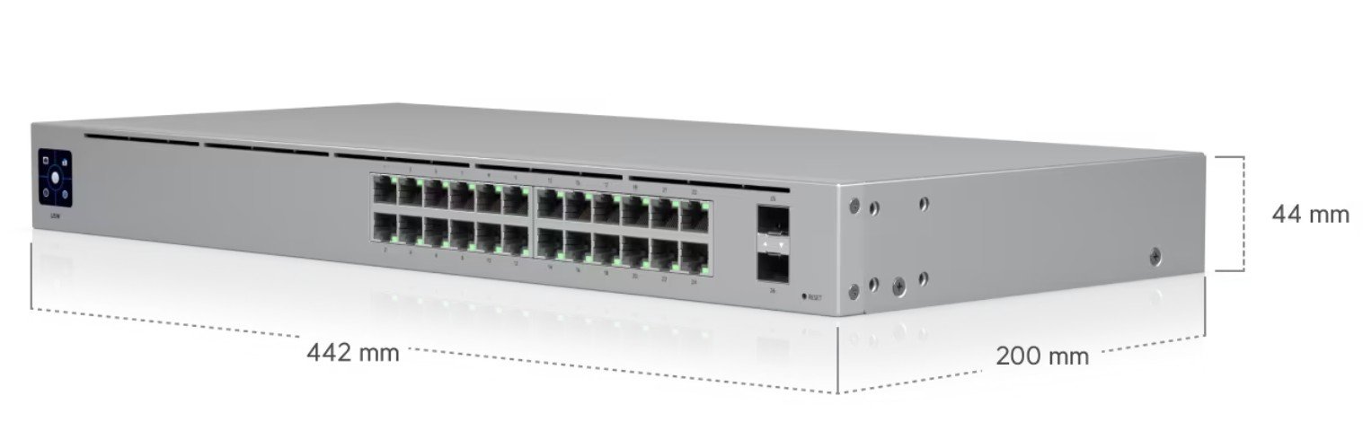 The Ubiquiti UniFi Switch USWβ24 is a fully managed 24βport Gigabit switch designed for enterprise and campus networks. With seamless UniFi Controller integration, advanced switching features, and dedicated SFP uplinks, it delivers reliable performance and centralized management for scalable deployments.