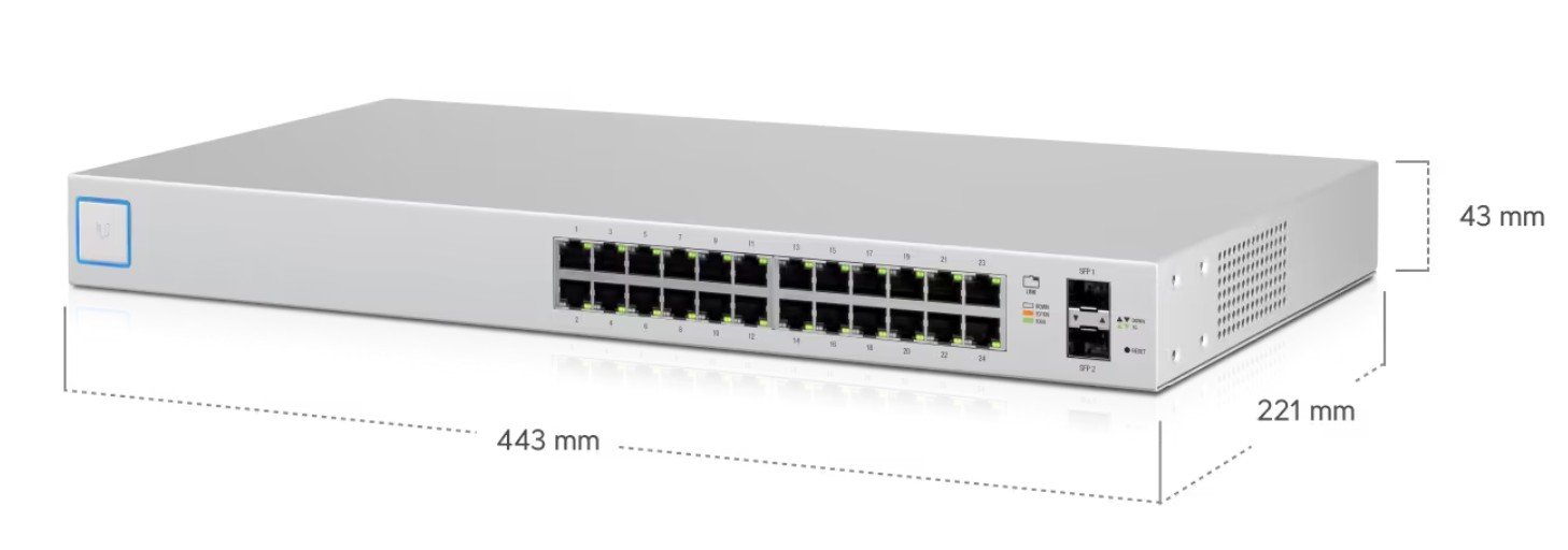 Deploy the UniFi US-24 for reliable, silent, and scalable Gigabit switching in your UniFi network.