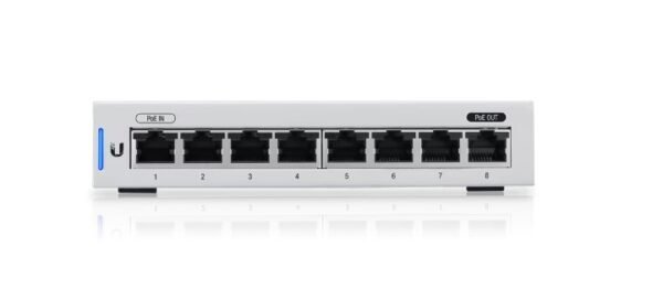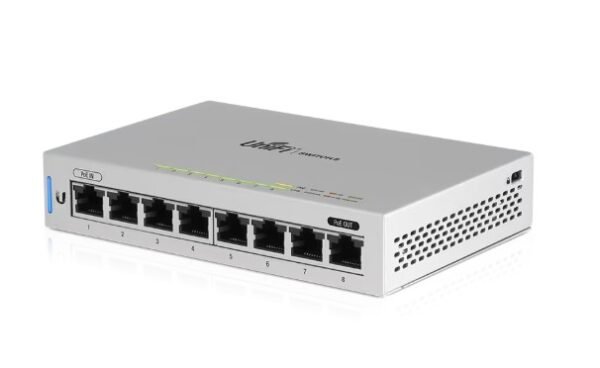 The Ubiquiti USβ8 (12W) UniFi Switch is a compact, fully managed Gigabit switch designed for small networks and edge deployments. With eight Gigabit RJ45 ports, including PoE passthrough capability, it delivers reliable connectivity and power for compatible UniFi devices. Integrated with the UniFi Controller, the USβ8 provides centralized management, monitoring, and seamless scalability in a lightweight form factor.