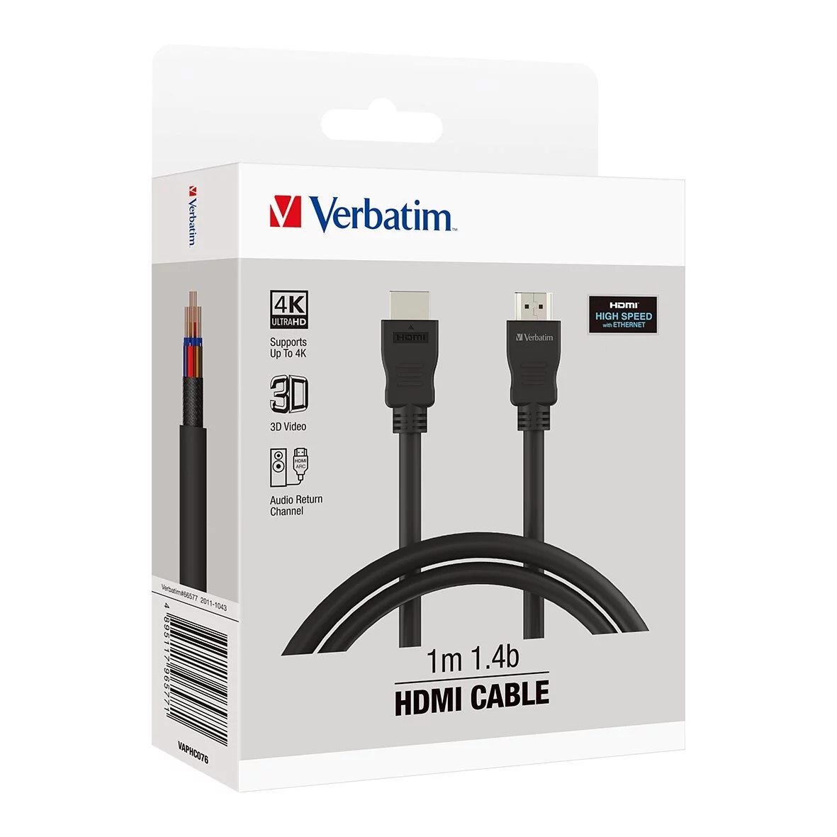 Verbatim HDMI to HDMI Cable β 100cm Length, HDMI Version 1.4B, Black, Model 66577