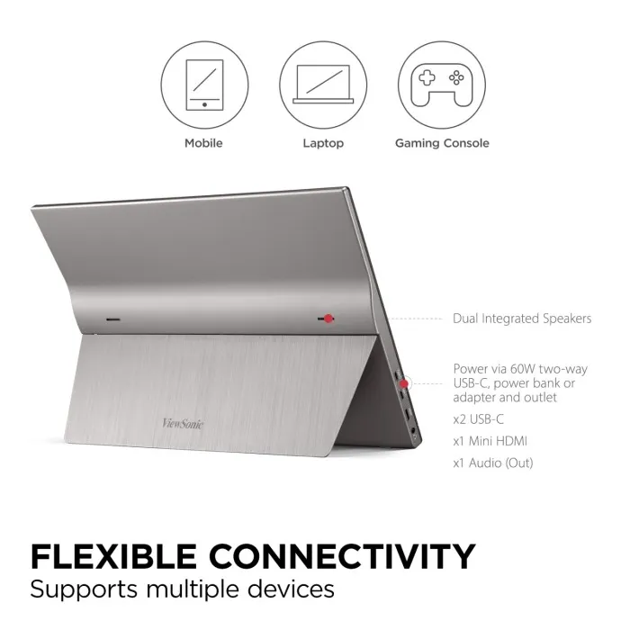 ViewSonic VG1655 15.6″ Portable Full HD IPS Monitor with USB-C connectivity and dual speakers
